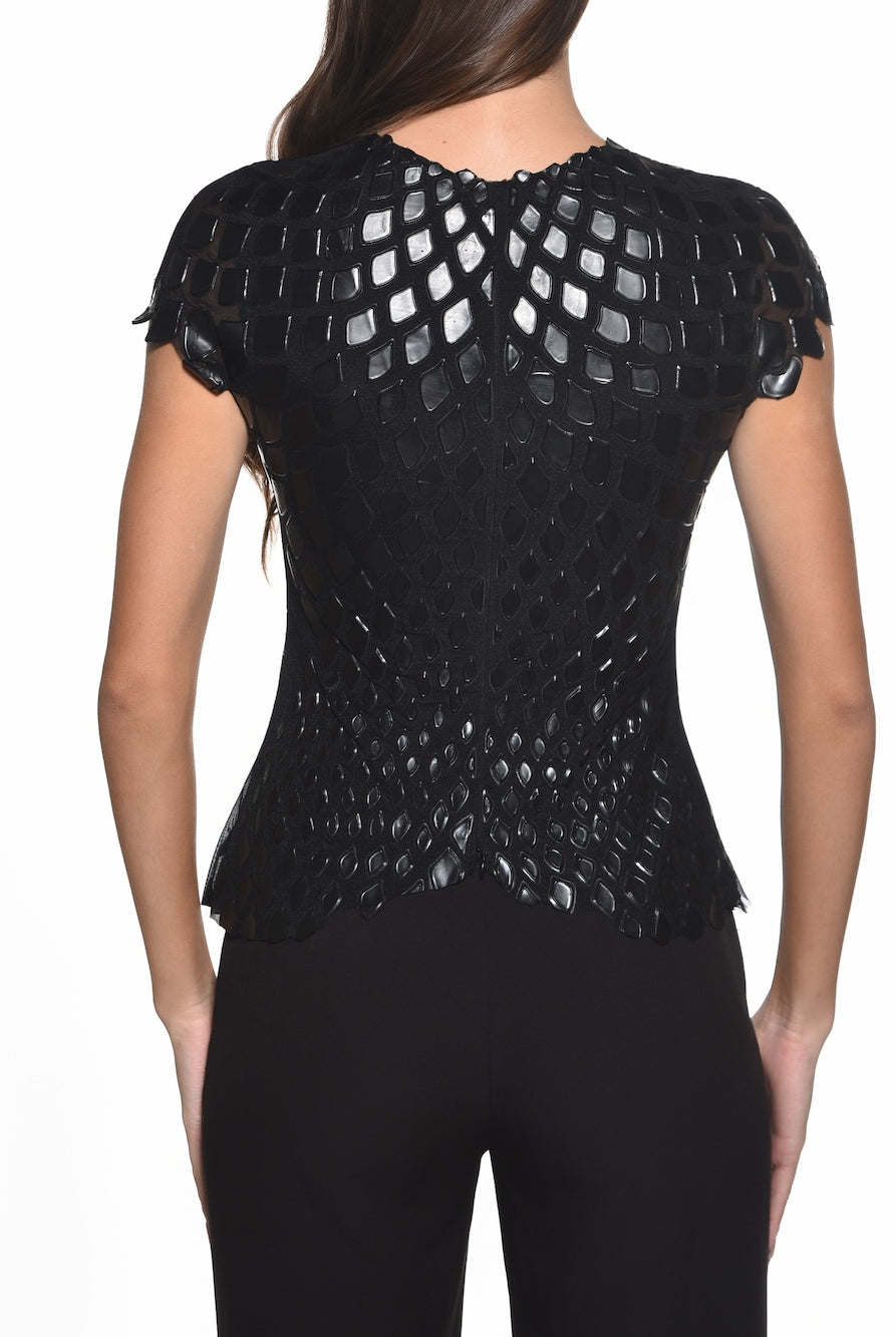 Avant-garde technology of stretch mesh and moldable resin is designed with comfort and movement in mind. Each design has optical illusions embedded to reform and manipulate the body shape. Our wearable art warms and molds to the body giving a perfect fit and comfort.