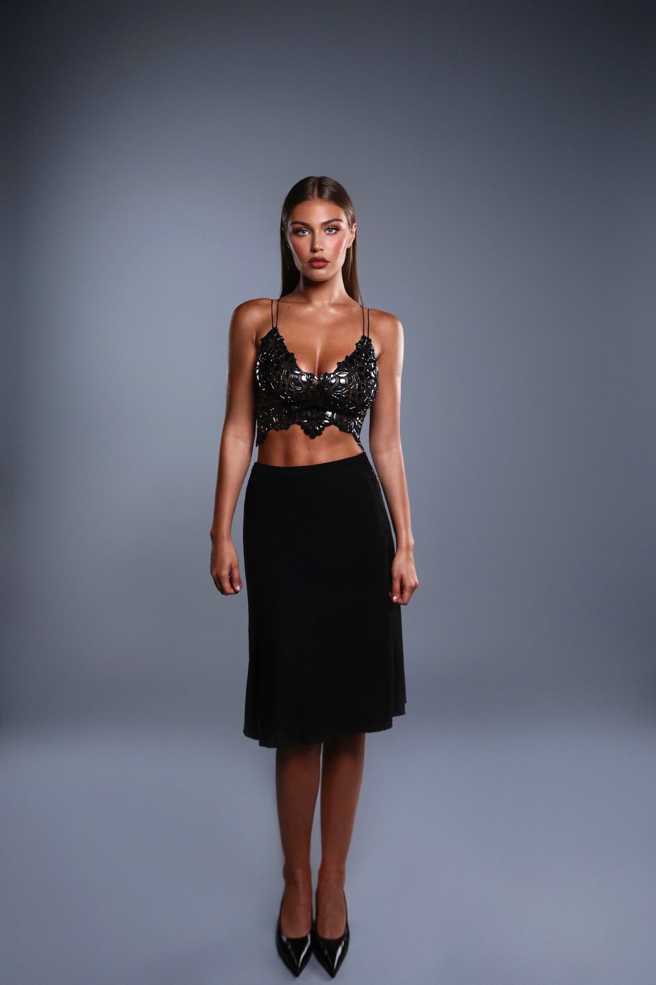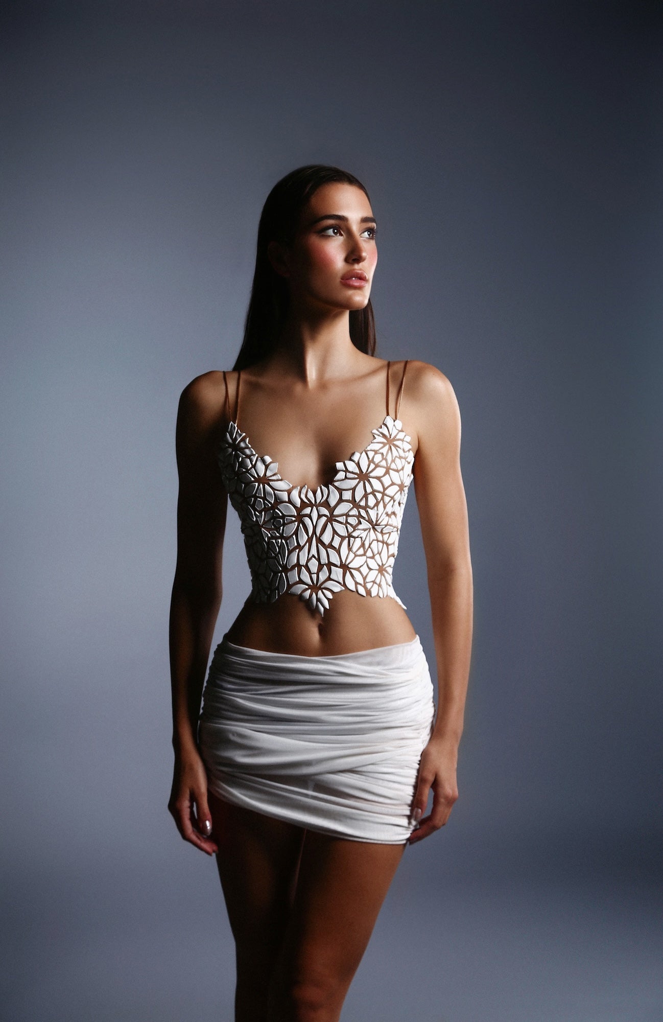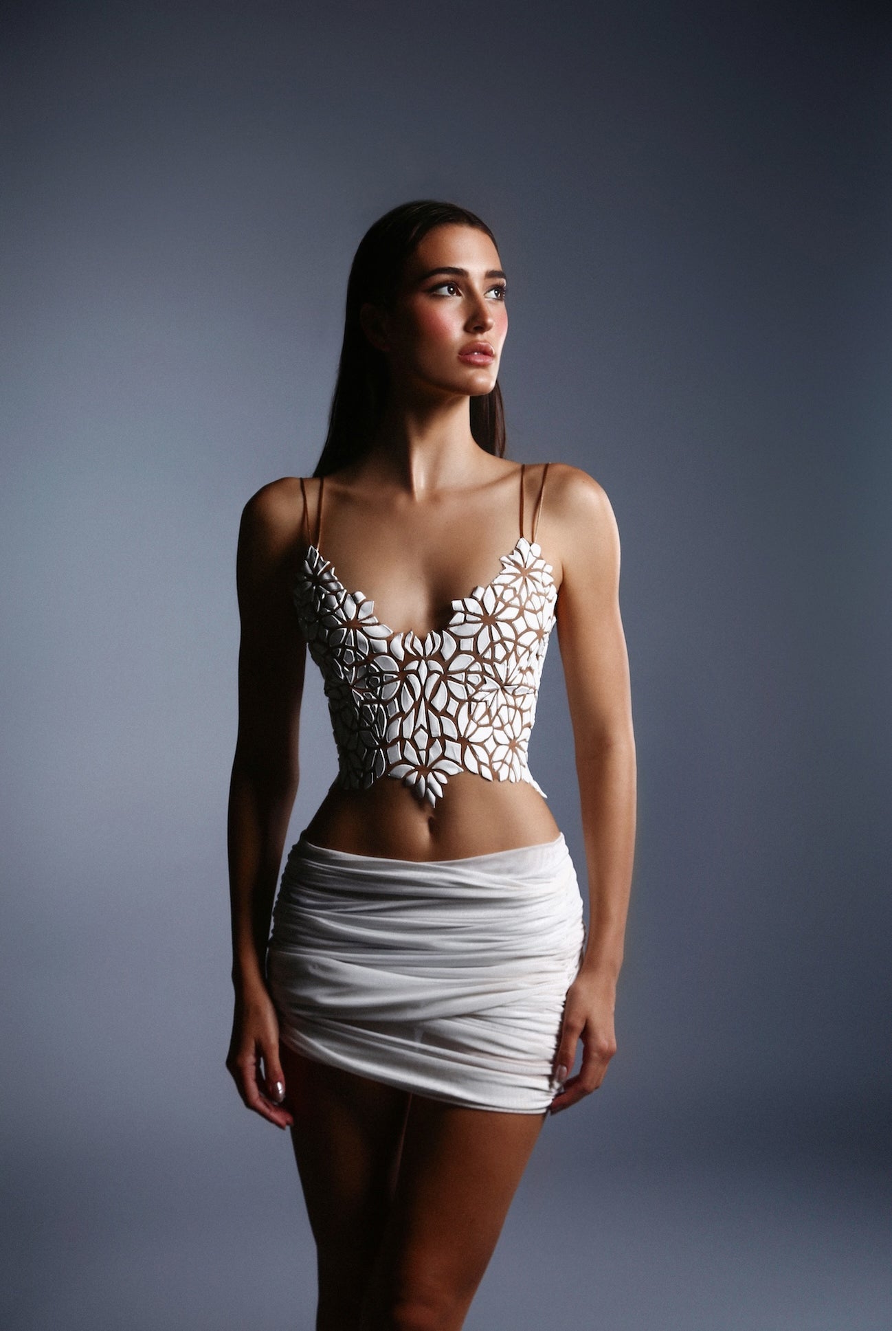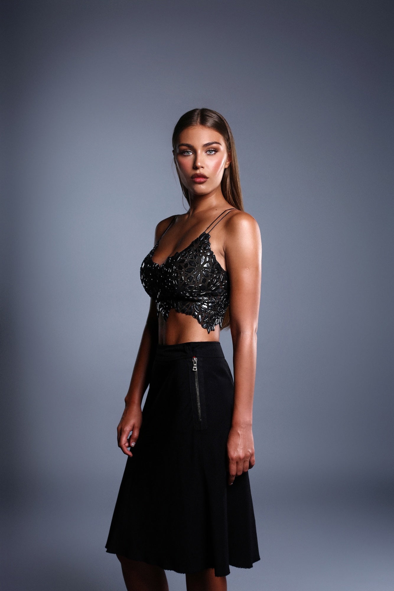 Avant-garde technology of stretch mesh and moldable resin is designed with comfort and movement in mind. Each design has optical illusions embedded to reform and manipulate the body shape. Our wearable art warms and molds to the body giving a perfect fit and comfort.