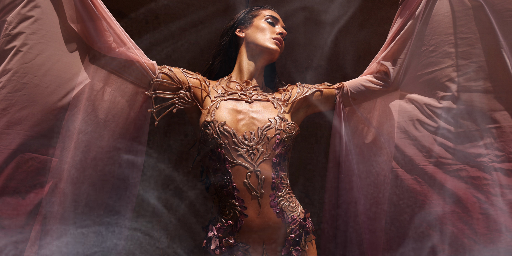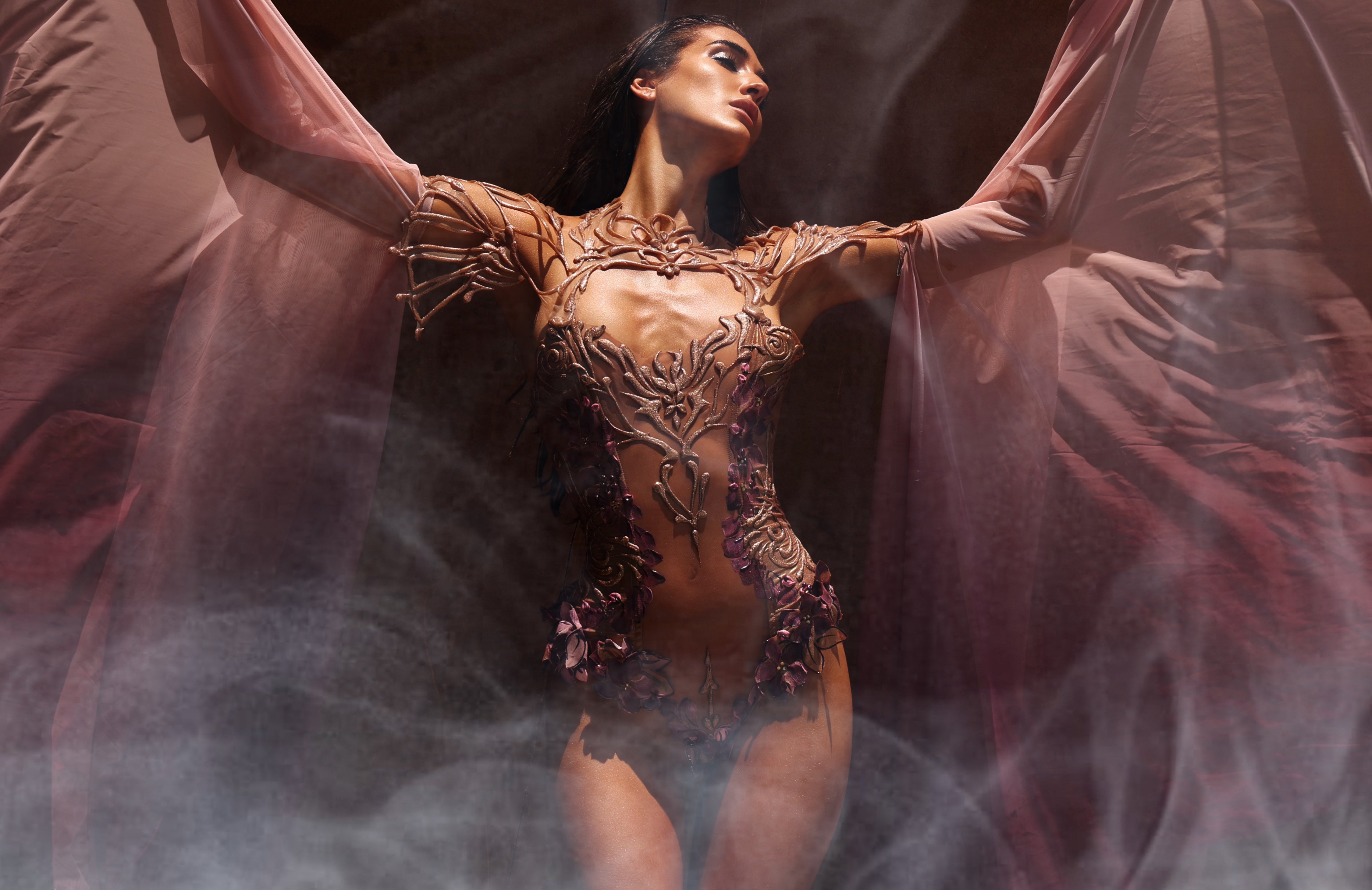 Avant-garde technology of stretch mesh and moldable resin is designed with comfort and movement in mind. Each design has optical illusions embedded to reform and manipulate the body shape. Our wearable art warms and molds to the body giving a perfect fit and comfort.