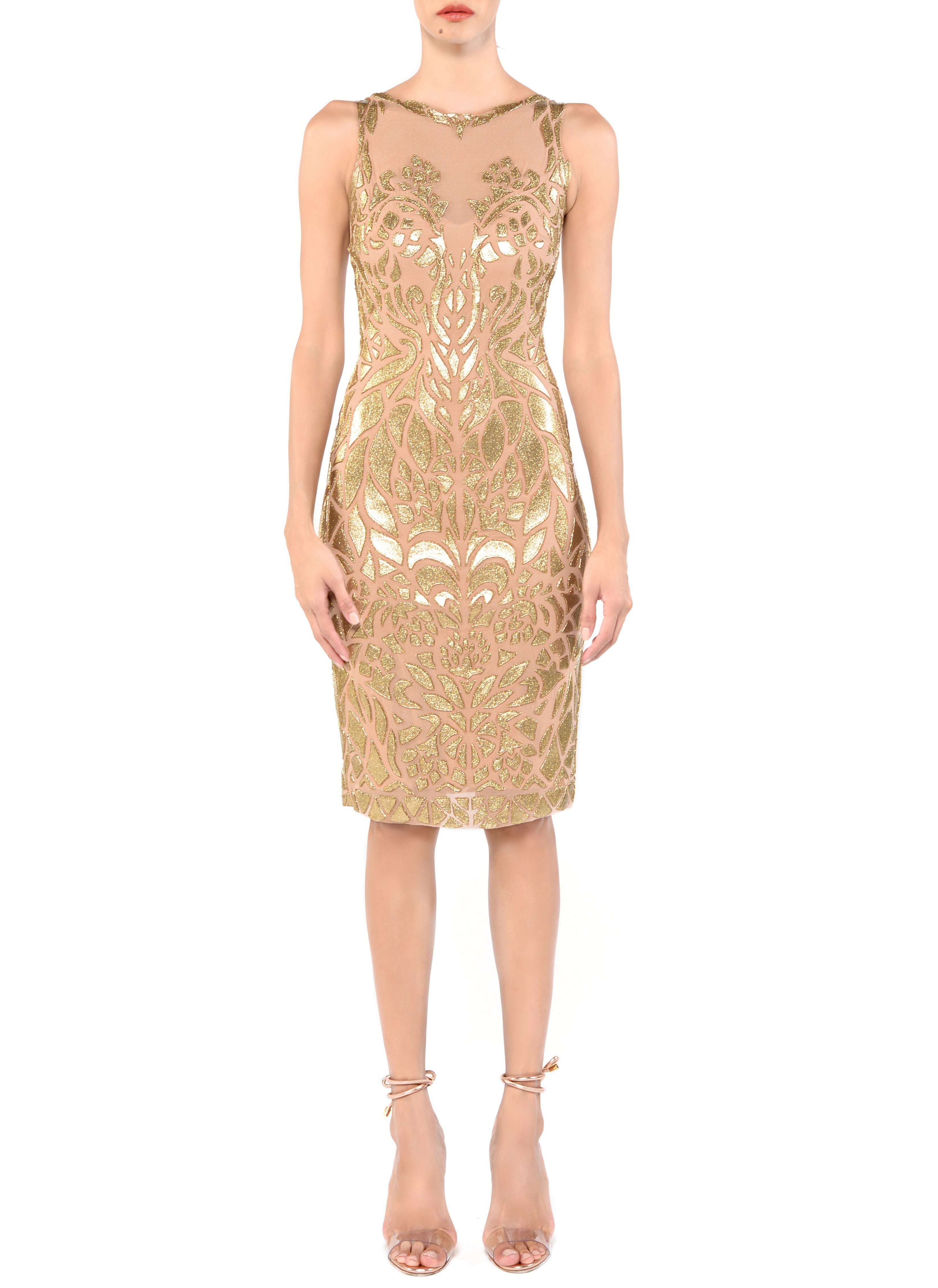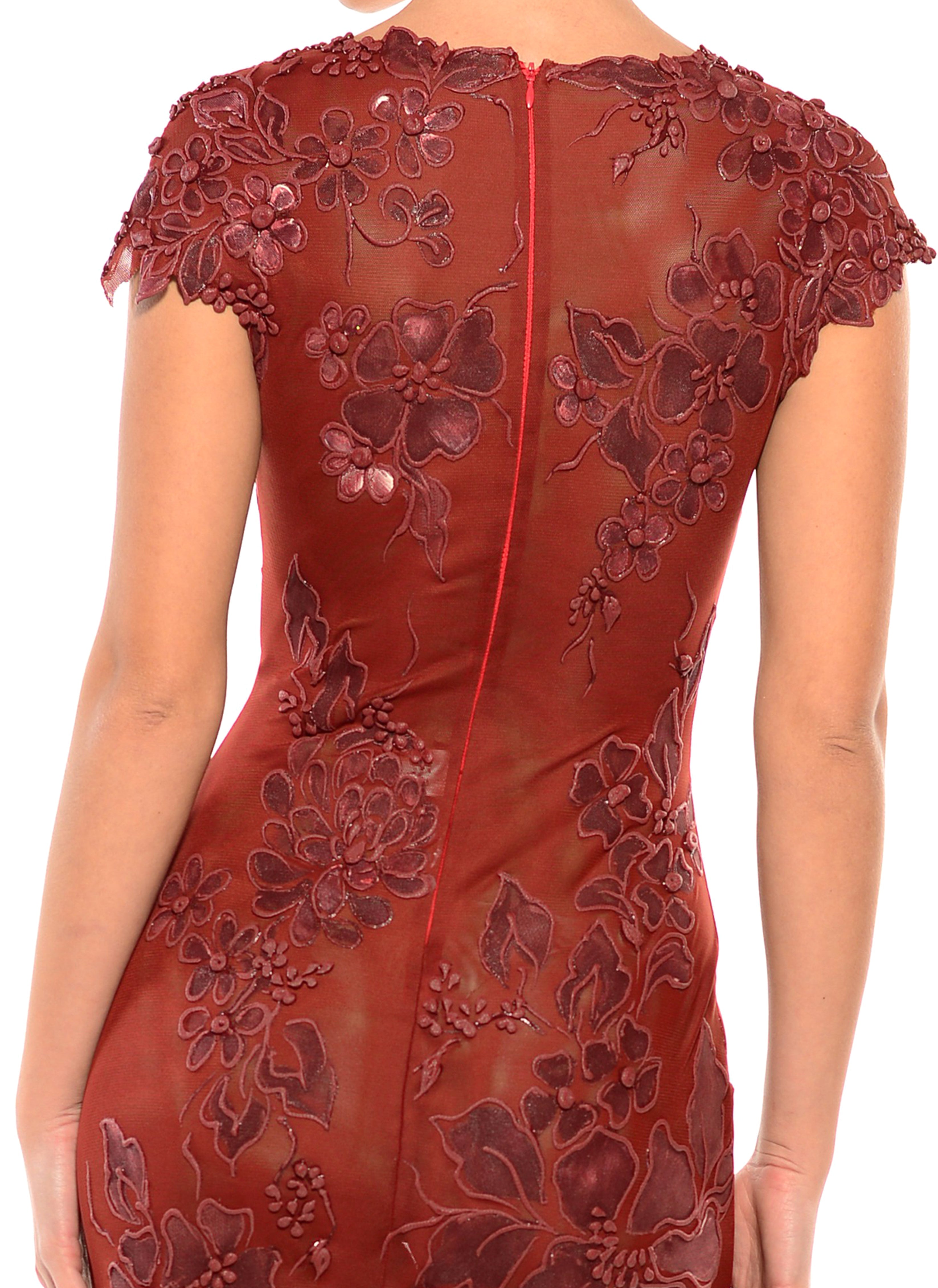 Knee Length Extended Cap Sleeve Scallop Front Dress