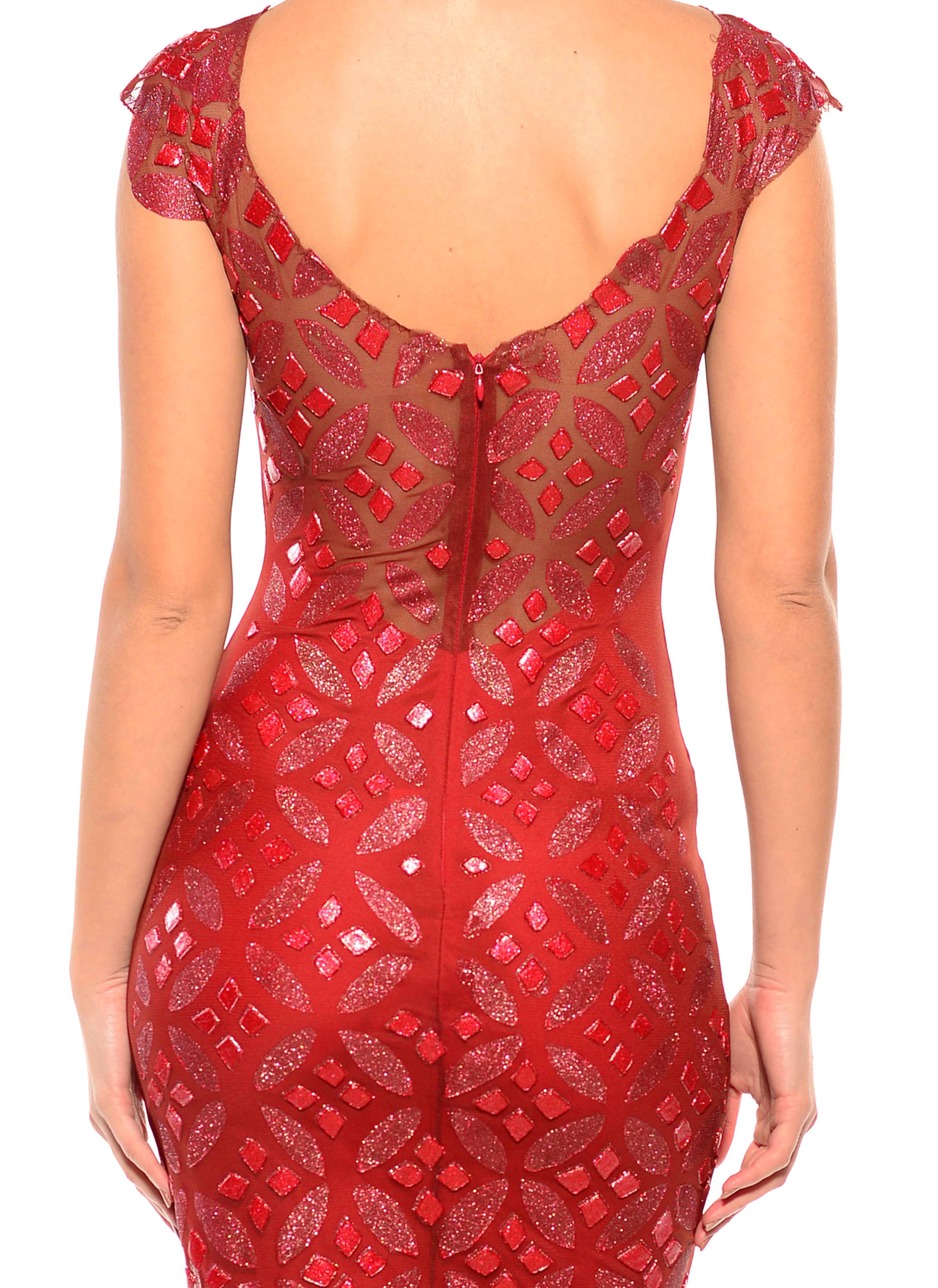 Knee Length Extended Cap Sleeve Scallop Front Dress