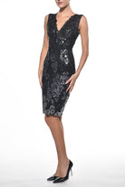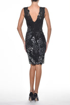 Hand-cut V Front V Back dress in black mesh, painted in Black Silver Glitter Botanica artwork—shimmering strokes that sculpt and illuminate the form.