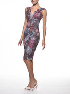 Hand-cut knee-length dress in printed mesh, painted in vibrant Multicolor Botanica artwork.