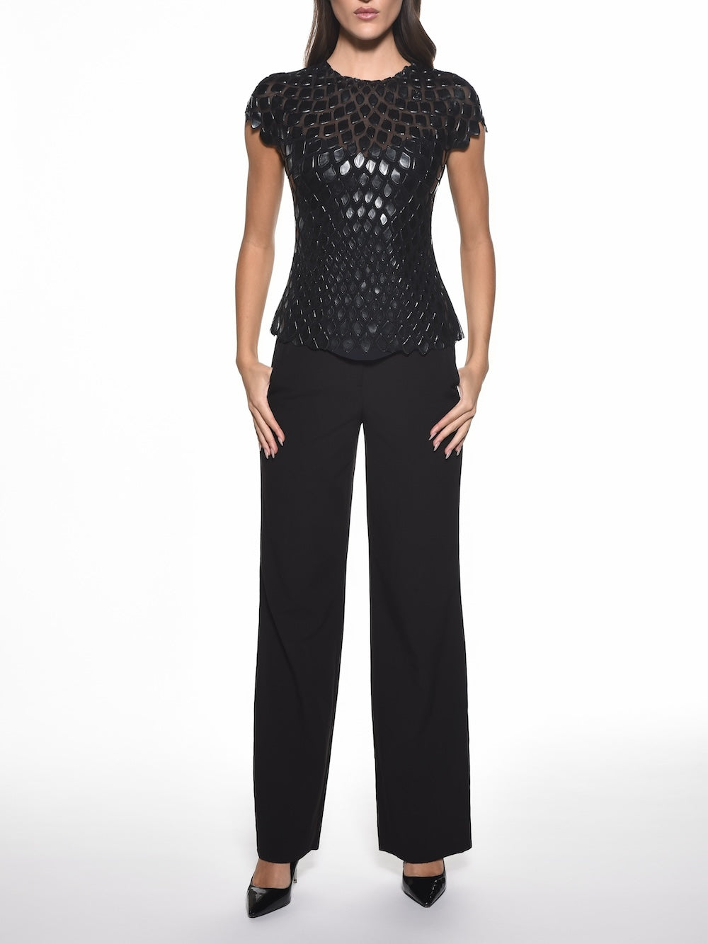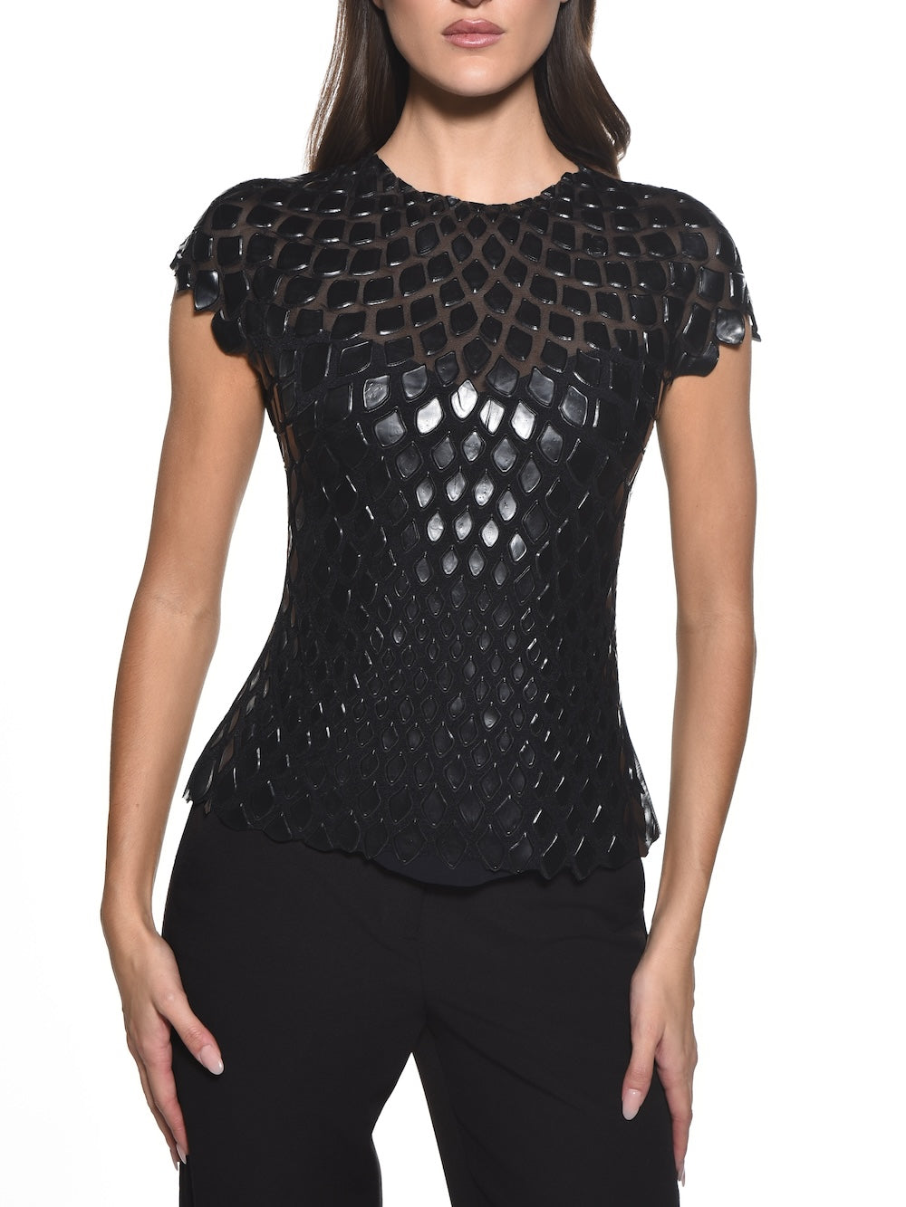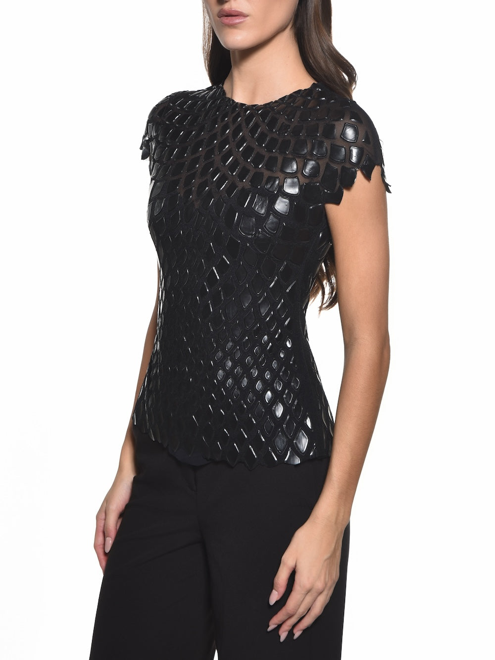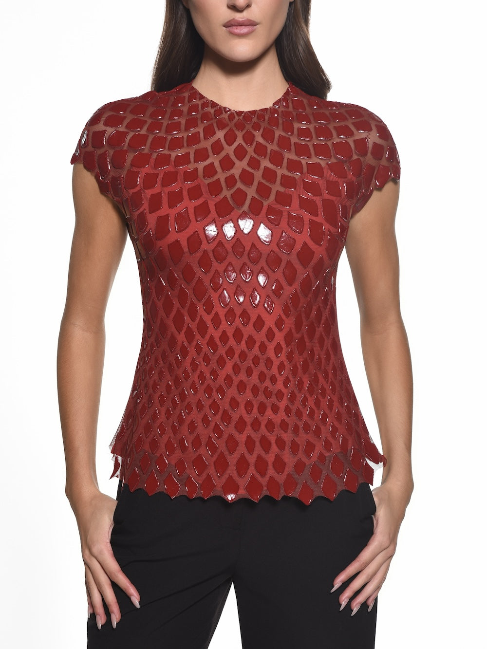 Fitted Jewel Neck Cap Sleeve Top