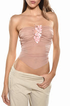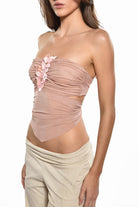 A timeless vintage recreation, meticulously crafted for the modern muse. This couture tie-back crop top features our signature English Garden artwork, hand-painted in soft flesh tones and adorned with hand-placed crystals, creating an ethereal shimmer. Designed to sculpt and enhance, this piece blends romantic elegance with contemporary edge, offering a one-of-a-kind couture experience. Wearable art, made just for you—because true luxury is crafted, not mass-produced.