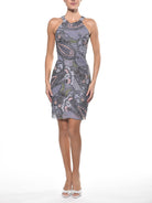Hand-cut racerback dress in printed mesh, painted in a Custom Multicolor artwork created exclusively for this piece. Sculpting, expressive, uniquely personal.