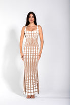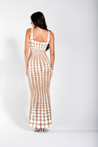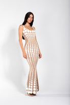 Immerse yourself in the artistry of the Ema Savahl Ender Bubbles White/Nude Knee-Length Dress. Crafted to enchant the senses, this dress is a testament to the illusionary art form, with its hand-painted Ender Bubbles design that dances across the fabric, creating a captivating optical spectacle that flatters and fascinates with every turn.
