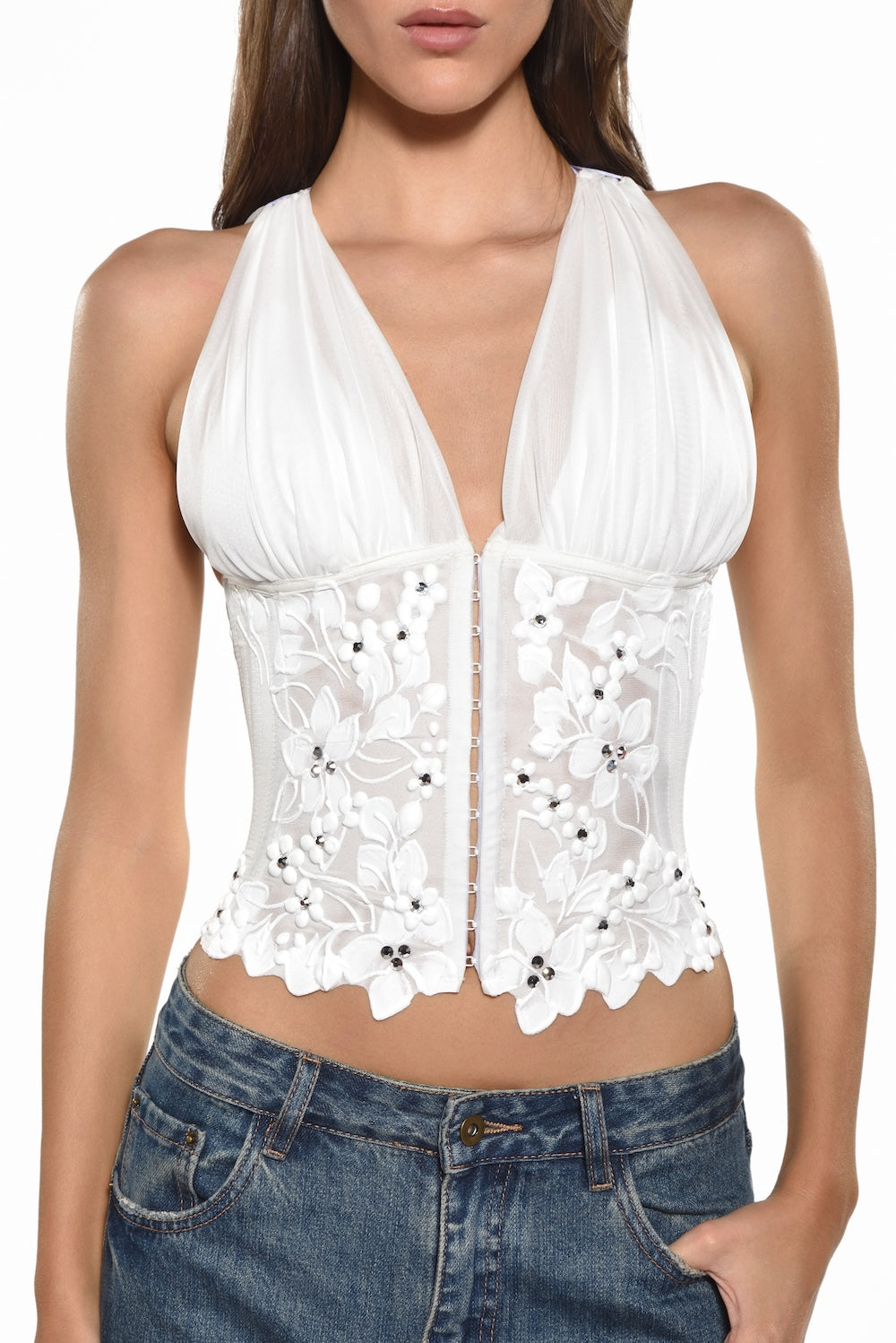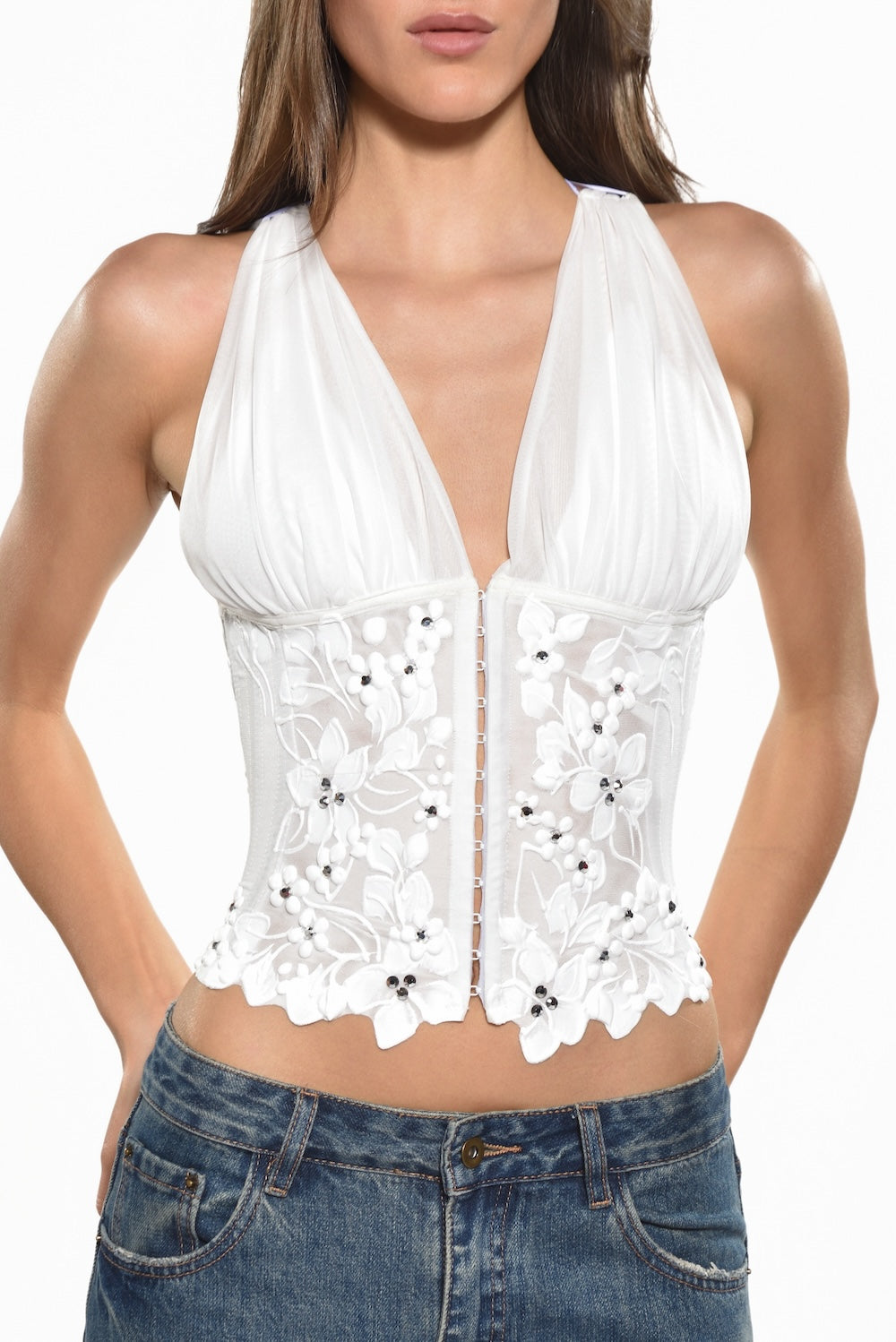 Ivory Corset Top hand painted in Ivory English garden artwork.