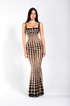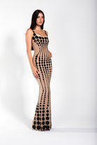 Immerse yourself in the artistry of the Ema Savahl Ender Bubbles Gown. Crafted to enchant the senses, this dress is a testament to the illusionary art form, with its hand-painted Ender Bubbles design that dances across the fabric, creating a captivating optical spectacle that flatters and fascinates with every turn.