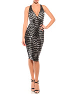 Knee Length Deep V-Neck Cross Back Dress
